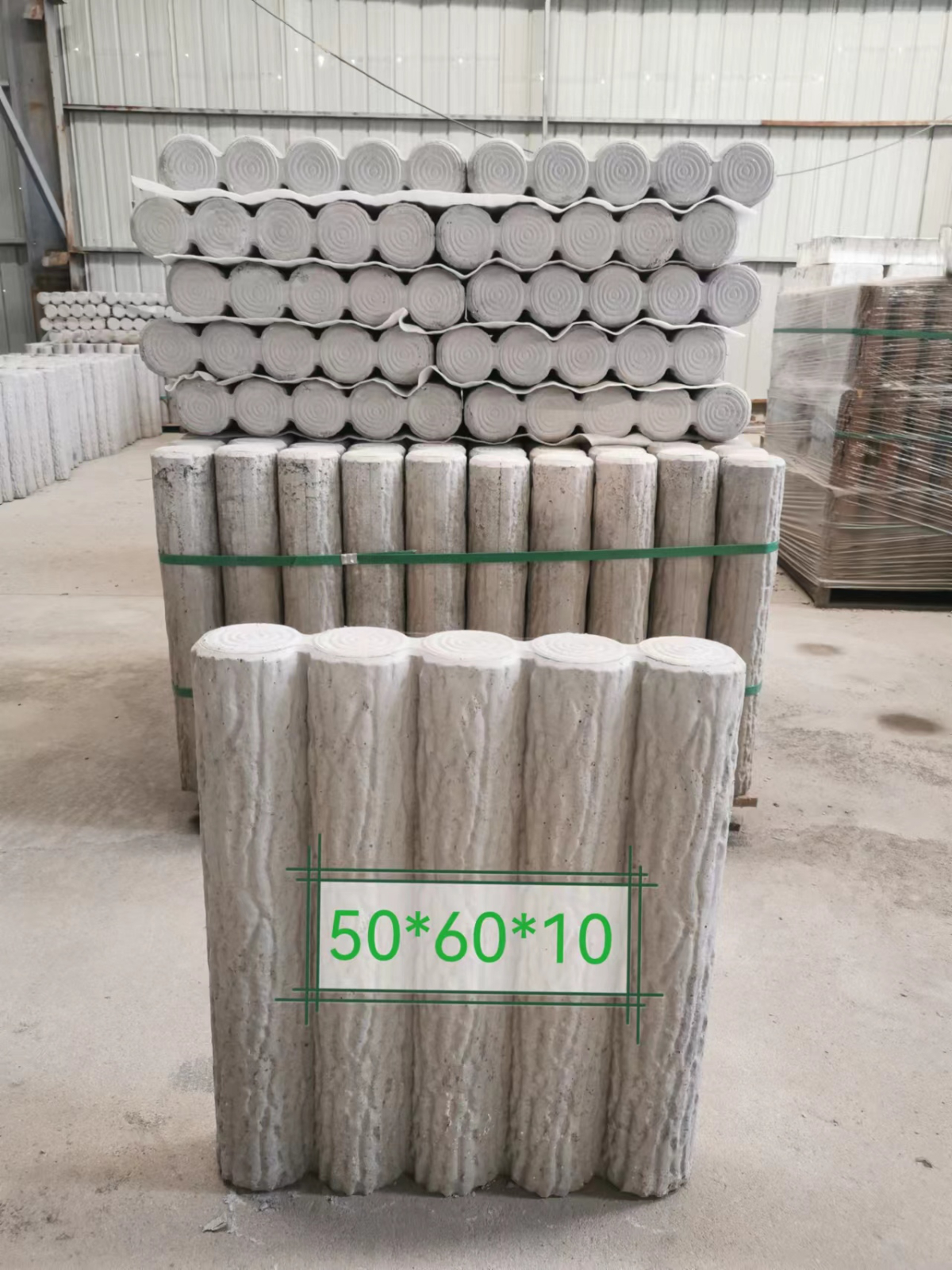 ③仿木成型:仿木面層為彩色聚合物水泥砂漿(水泥:砂子:SPC乳液:水≈1.0:1.2:0.4:0.12~0.15,根據需要摻適量顏料),抗凍等級為F150。面層厚度一般≥20mm,局部極限小厚度不得小于10mm,外型為松樹或榆樹,有樹皮、樹節、年輪、裂縫、脫落等仿真效果。